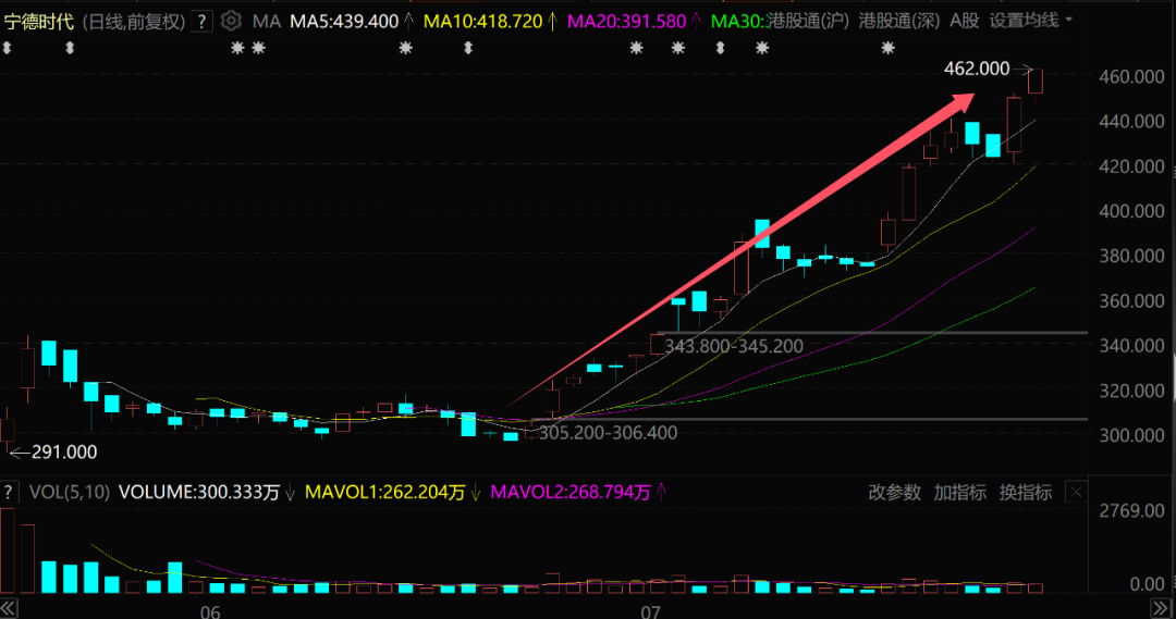 6月下旬开始,港股的宁德时代彻底爆了,一个月左右暴涨55%以上。