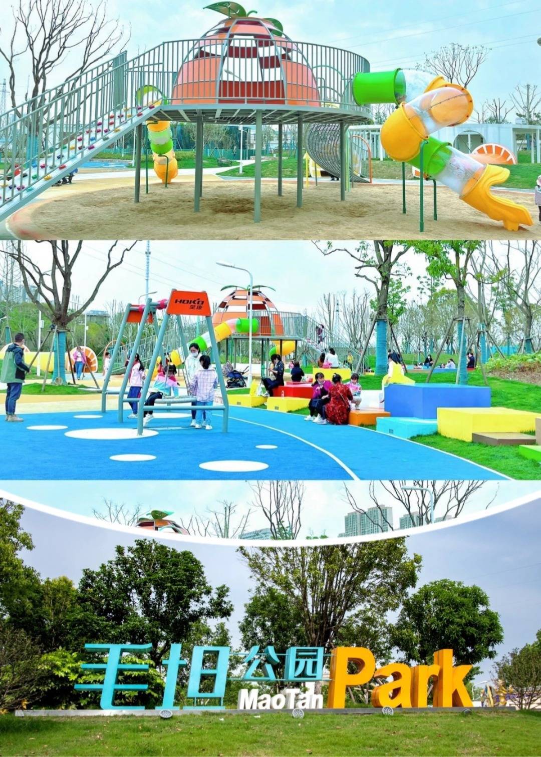 位于杨泗港快速路南侧、烽火路以东的毛坦公园,是洪山区首个双拥主题公园,近两公里的绿色条带将花卉展示区、乐活运动区、生态休闲区巧妙串联。其中,白沙三路至白沙四路区间的儿童乐园,五彩缤纷的塑胶跑道上,滑滑梯、跷跷板、秋千等设施一应俱全,孩子们可以尽情奔跑嬉戏。公园内随处可见的拥军元素,还能让家长借机开展爱国主义亲子教育,让游玩更具意义。